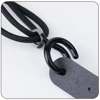 サムフックに穴がなくても大丈夫。付属のブラック皮ベルトでしっかりホールドできます。