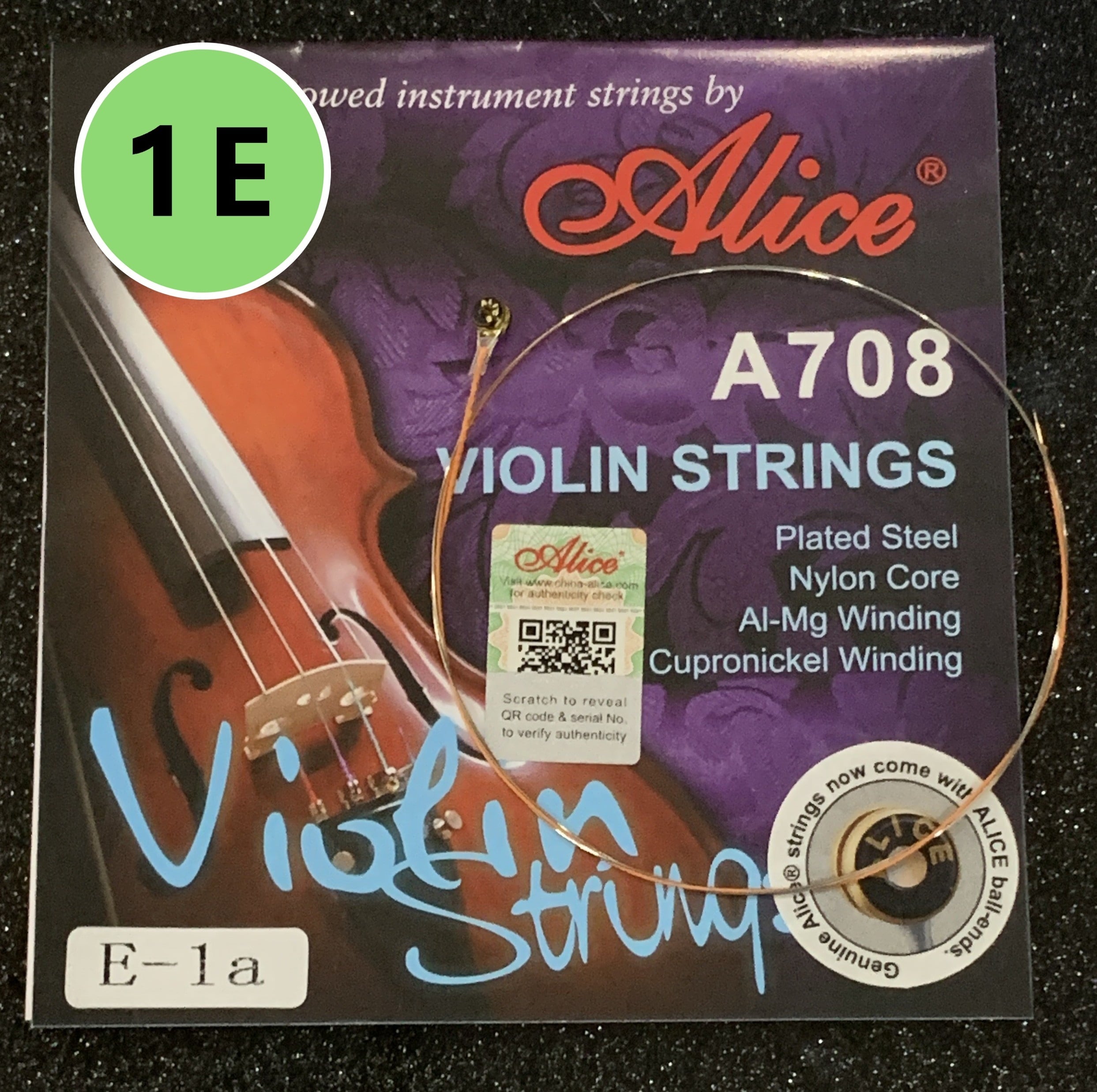 散売】 A708 E1弦×2◆ Alice バイオリン弦(ばら売り)E線(1st)×2本セット◆【送料無料!】(分数弦4/4、3/4、1/2、1/4もあります)